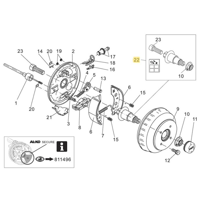 Ax butuc AL-KO 34/64/37 de sarcina 1350 kg marca AL-KO sarcina max. 1350kg filet tip M20 rulmenti compatibili rulmenti cu dimensiunile 34x64x37 (Øinterior x Øexterior