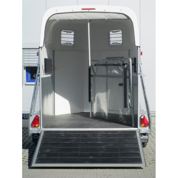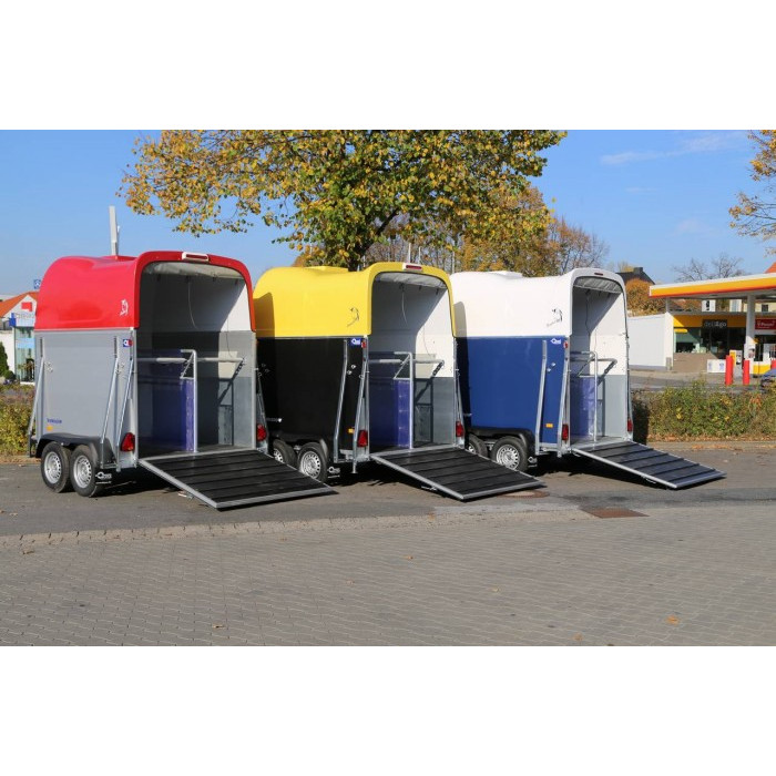 remorca destinata transportului de cabaline franata 2000 kg in 2 axe cu sarcina utila de 1070 kg si dimensiuni utile de 340x174x230cm