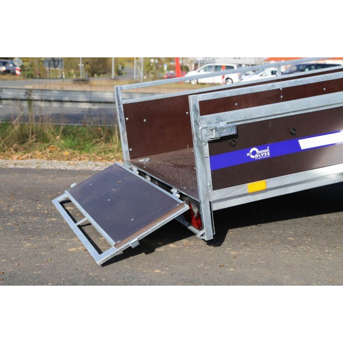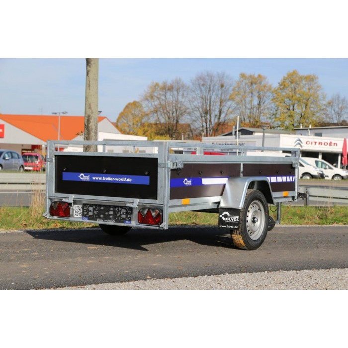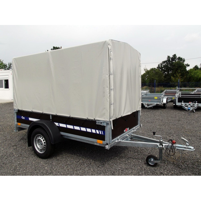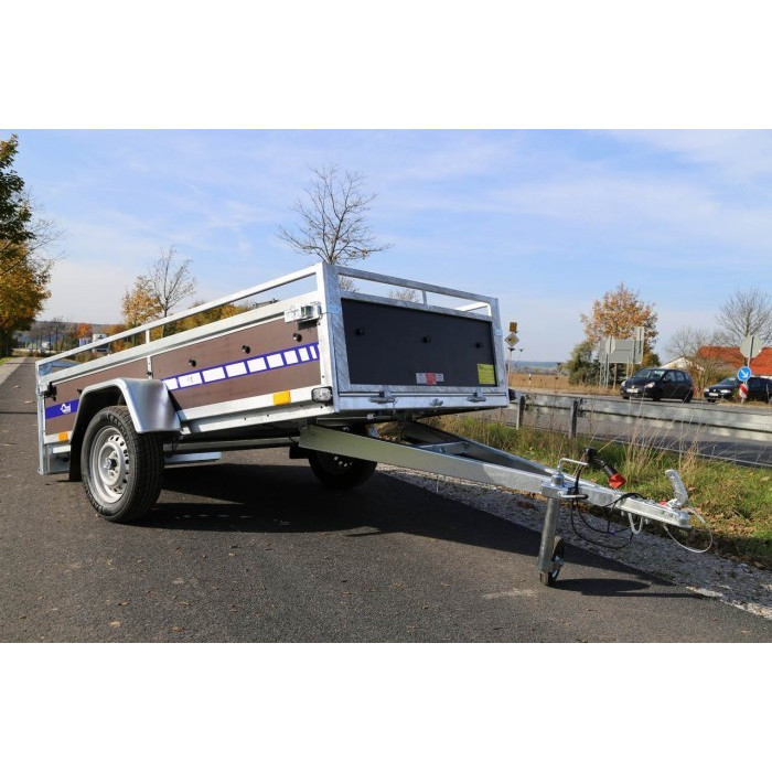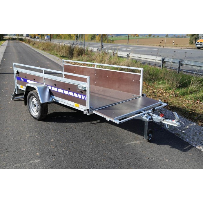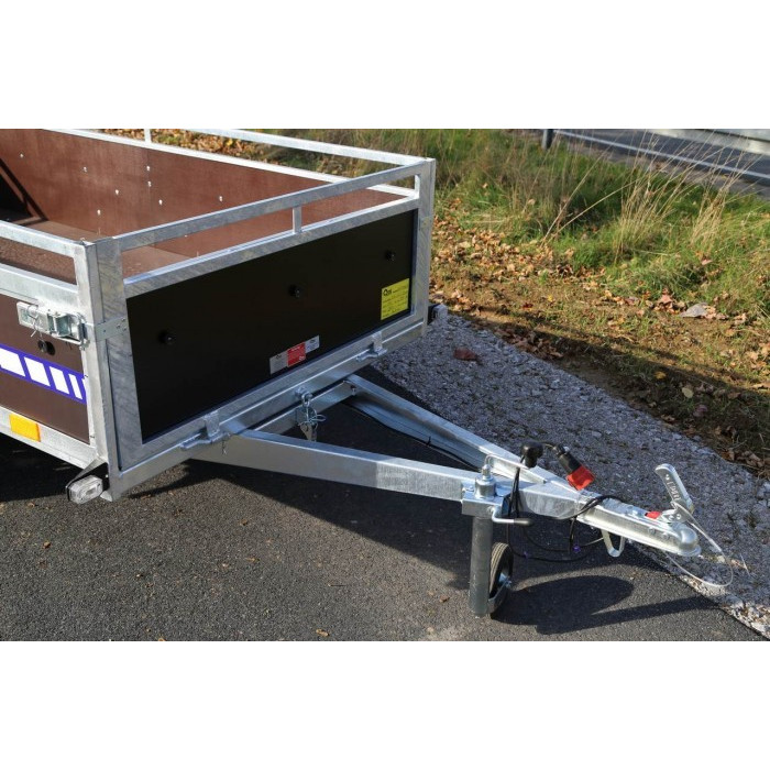 Remorca usoara monoax cu sarcina maxima autorizata de 750 kg , fara sistem de franare, avand sarcina utila de 550 kg, dimensiuni exterioare de 375x180x90 cm si spatiu util de 250x130x50 cm.